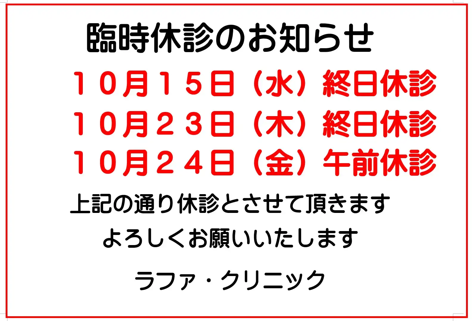 【臨時休診のお知らせ】 - 2025/5/9おかげ様をもちましてラファ・クリニックは2025年5月9日で開院3周年を迎えることができました